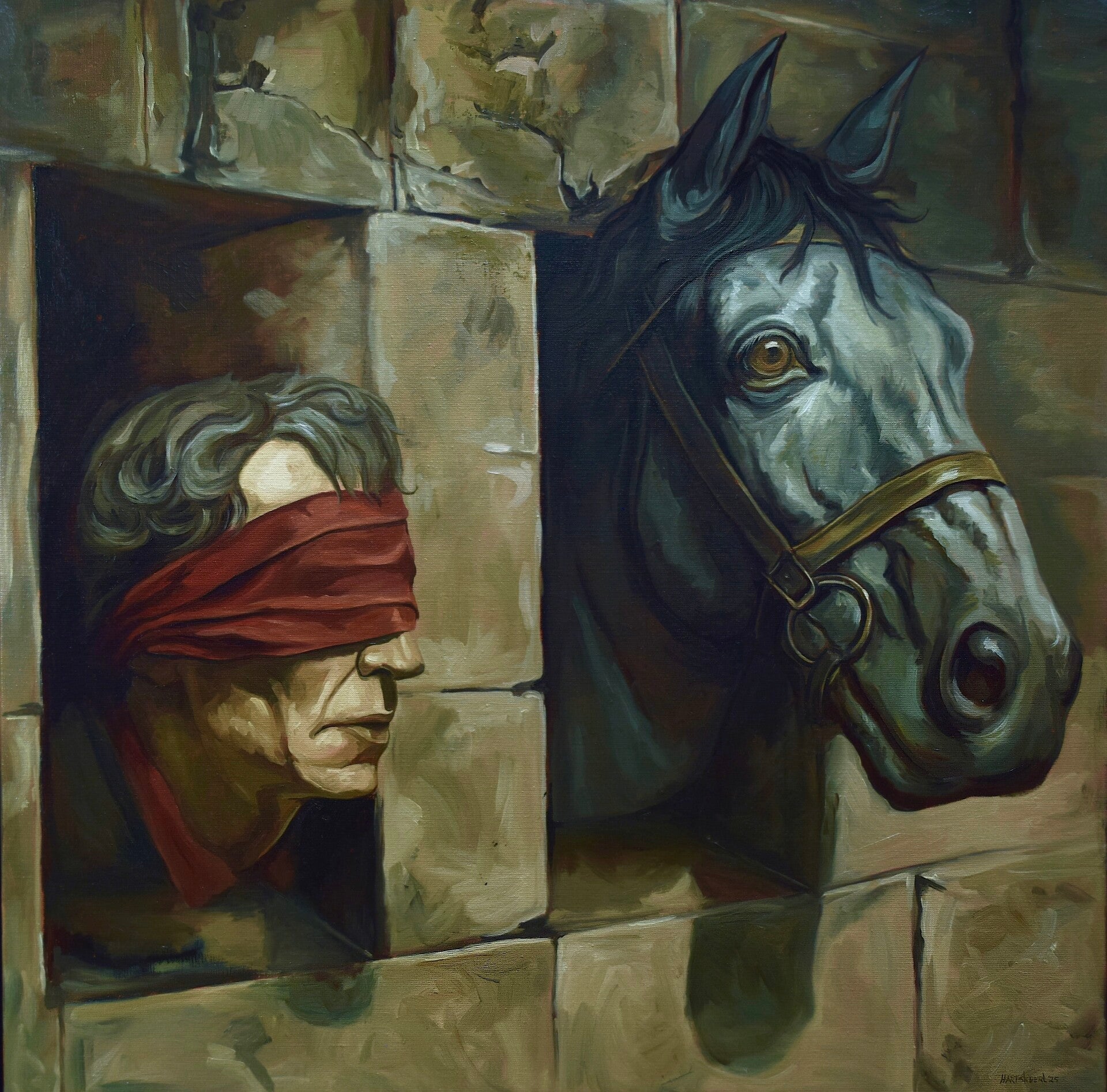 Man en Paard - olieverf op linnen/80x80cm/2025
